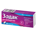 Зодак, 10 мг, таблетки, покрытые пленочной оболочкой, 30 шт